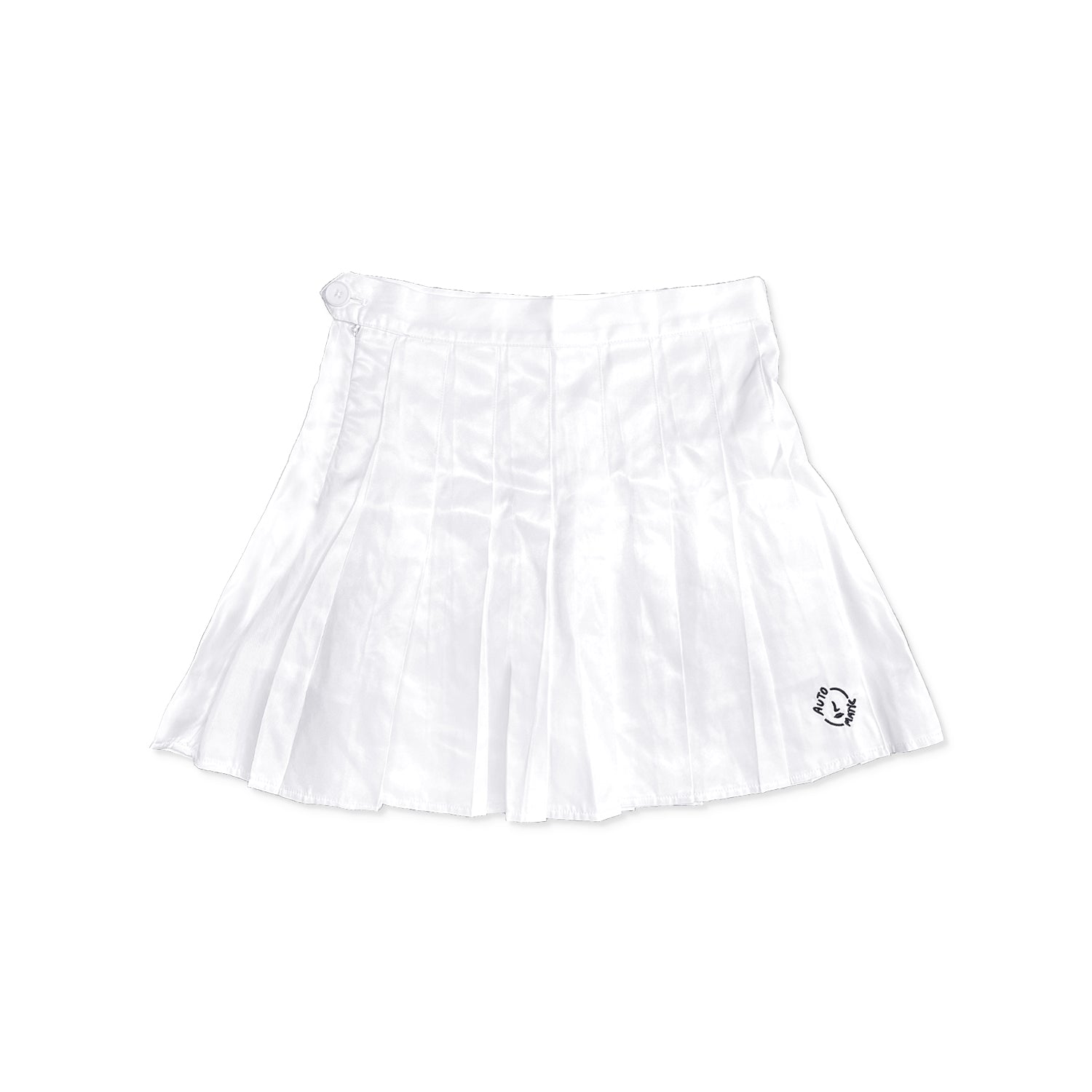 100% polyester pleated tennis skirt featuring an embroidered Automatic logo on the bottom left. Features a side zipper, button closure, and inside liner. Designed to be worn high waisted, please size up for a mid or lower waist fit.