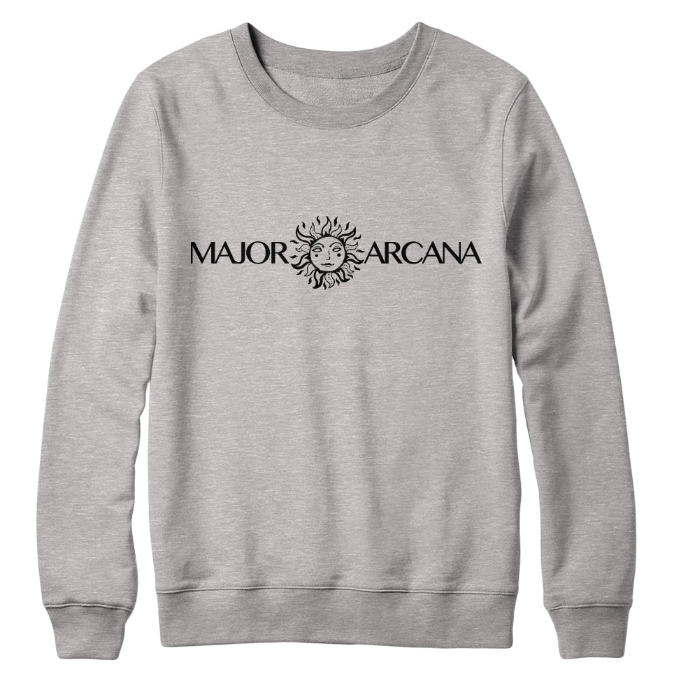 Classic 85/15 cotton/polyester heavy weight crewneck sweatshirt featuring a ribbed collar, wrist cuffs, and a waist band. Major Arcana logo printed on the front.